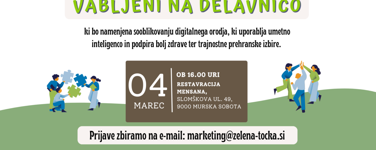 Udeležba je brezplačna, število mest je omejeno. Prijave zbiramo do ponedeljka, 2. marca 2026, na e-naslov: marketing@zelena-tocka.si.